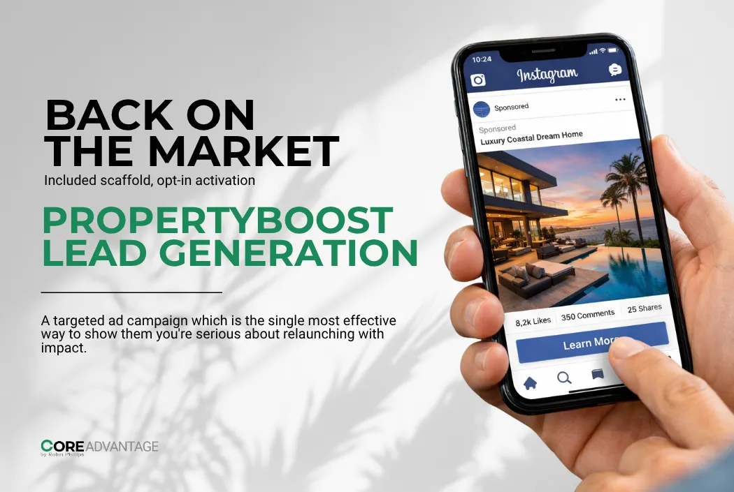 The PropertyBoost is an optional, powerful add-on you can select from within the intake form for most packages. The cost for the PropertyBoost campaign is separate from the COREAdvantage package price and is paid directly through BoldTrail. We handle the entire technical setup and launch of the campaign for you within your BoldTrail account.