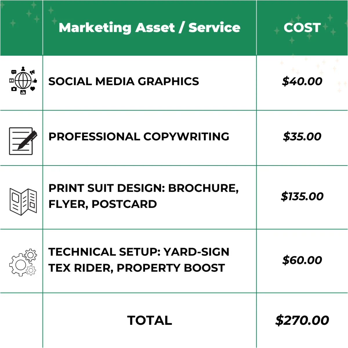 No. Each package purchase is valid for one specific property listing. The "Listing Marketing (Just Listed + Open House)" package, for example, provides a comprehensive toolkit for a single property's launch and its corresponding open house event. This focus allows us to create high-quality, tailored assets for each unique home you list.